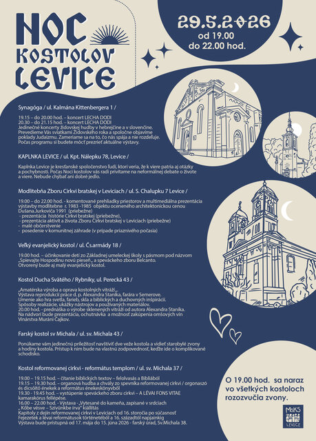 V Leviciach sa môžete tešiť na otvorené kostoly, zaujímavý program, hudbu, výstavy aj stretnutia v jedinečnej večernej atmosfére.